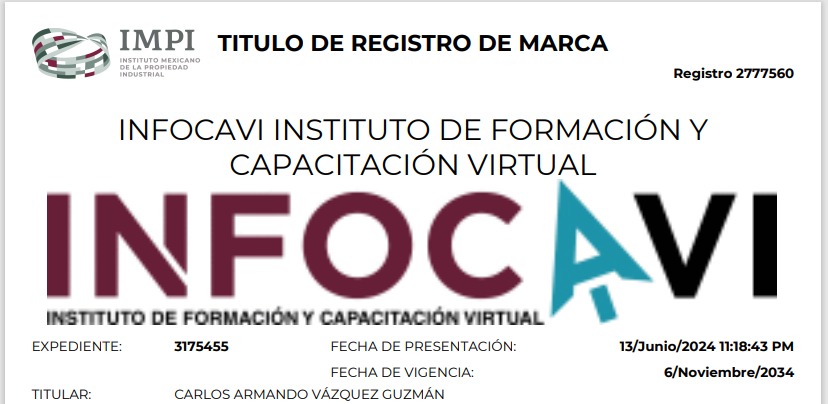 El Instituto de Formación y Capacitación Virtual (INFOCAVI), un proyecto de emprendimiento, institución que inicia con dos cursos y un diplomado impartidos en modalidad en línea, el objetivo es brindar al estudiantes la oportunidad de adquirir conocimientos y habilidades relevantes en el mundo actual, a través de un ambiente de aprendije virtual accesible y dinámico.